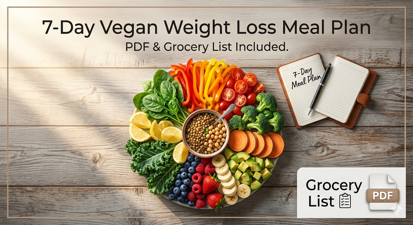 “Lose weight fast with this 7-day vegan diet plan. Simple meals, grocery list & free PDF included. Start today!