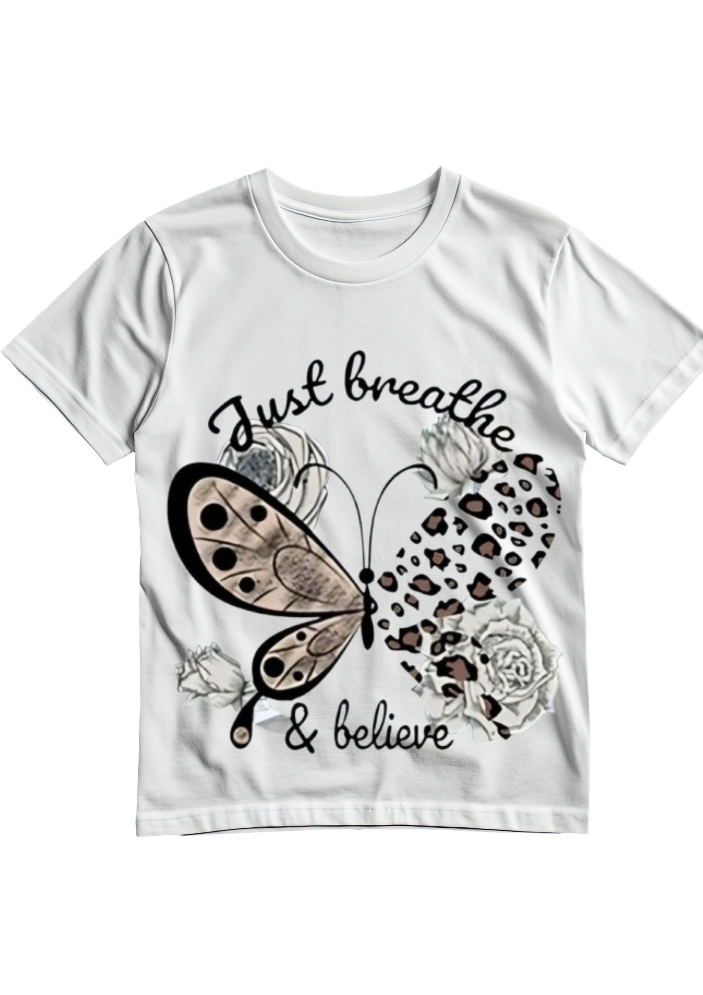 Elegant Butterfly & Flower Girl T-Shirt – Feminine Aesthetic Graphic Tee for Women